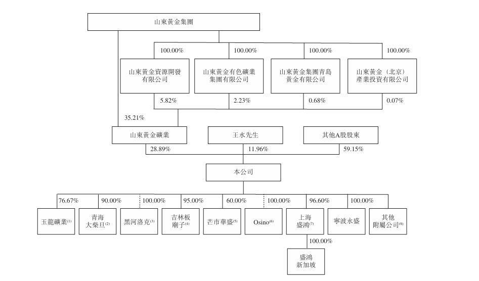 截至最后实际可行日期,山东黄金矿业持有公司约8.02亿股,持股比例约28.89%,为公司控股股东。此外,王水持有约3.32亿股,持股比例约11.96%;其他A股股东持股比例约为59.15%。